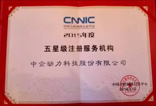 1月20日,中企动力被评为“2015年度五星级注册服务机构”,这也是CNNIC自2008年对域名地址服务机构评定“星级”以来,中企动力第8次获评。